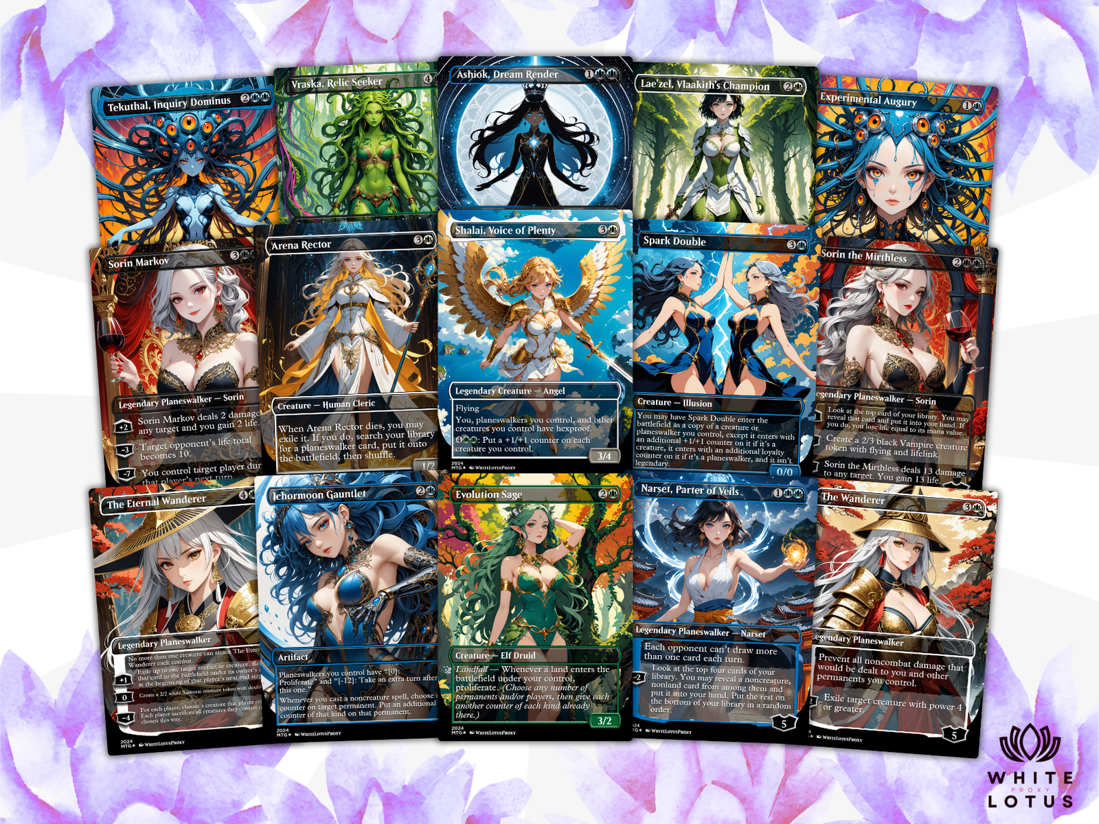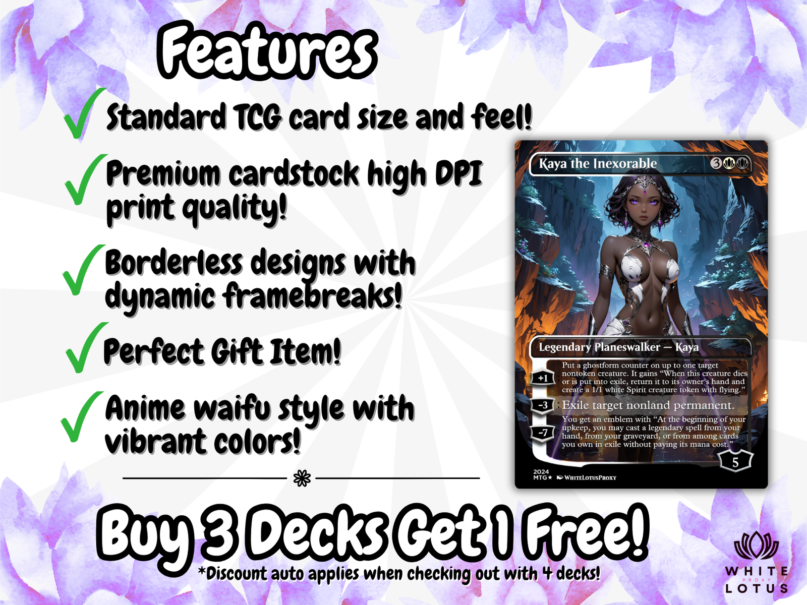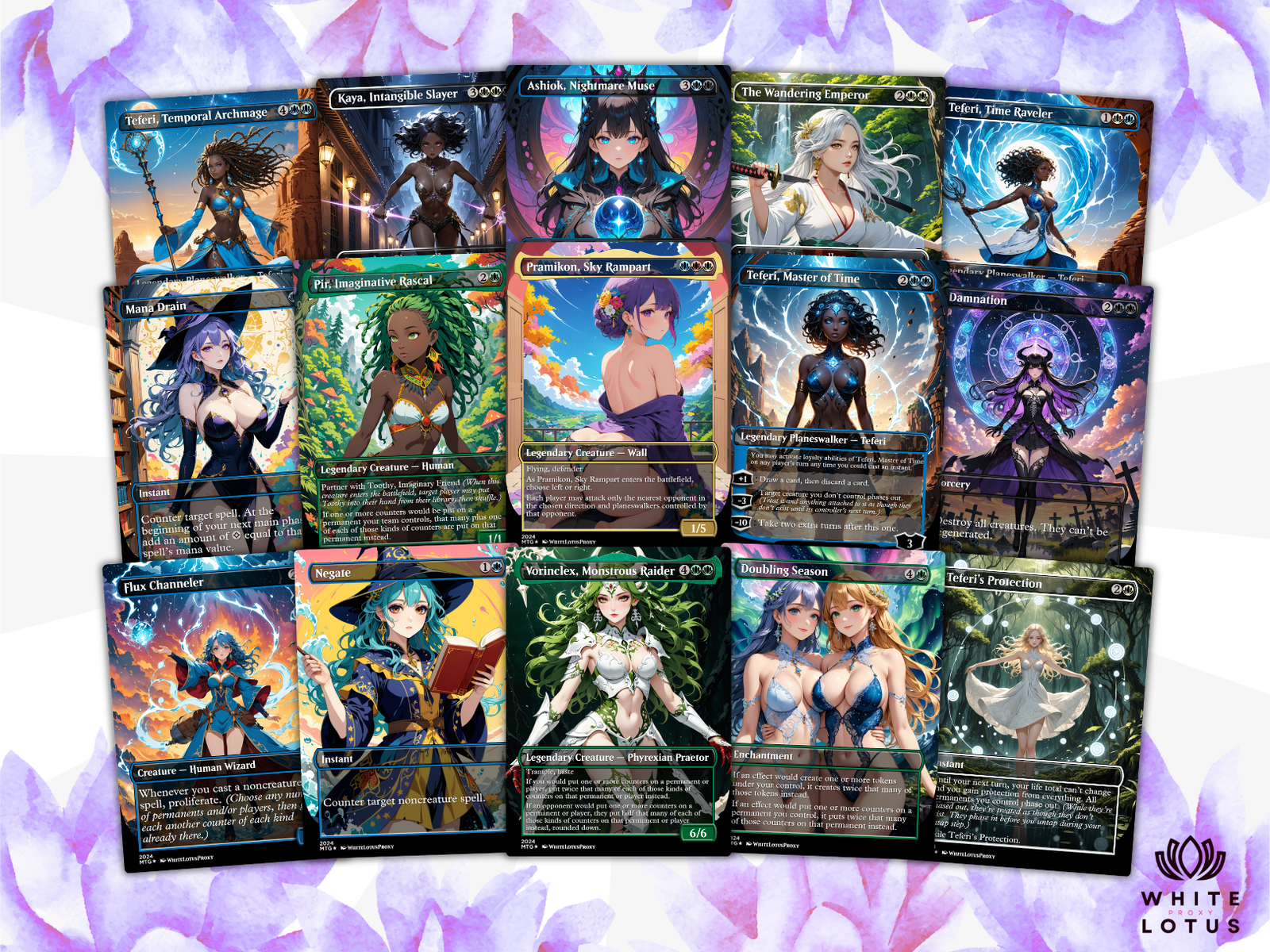 mtg proxy, mtg proxy commander, EDH proxy deck, mtg waifu, waifu commander deck, waifu deck, mtg anime, anime commander, mtg proxies, commander deck, mtg decks etsy, mtg tokens, mtg playmat, mtg counters, mtg accessories, magic lands, deck box sleeves, custom cards, Atraxa Praetors Voice, Superfriends, Planeswalker deck