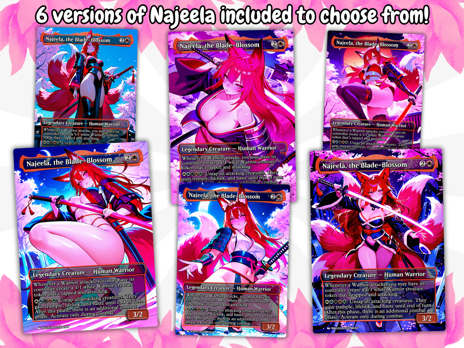 mtg proxy, mtg proxy commander, EDH proxy deck, mtg waifu, waifu commander deck, waifu deck, mtg anime, anime commander, mtg proxies, commander deck, mtg decks etsy, mtg tokens, mtg playmat, mtg counters, mtg accessories, magic lands, deck box sleeves, custom cards, najeela mtg