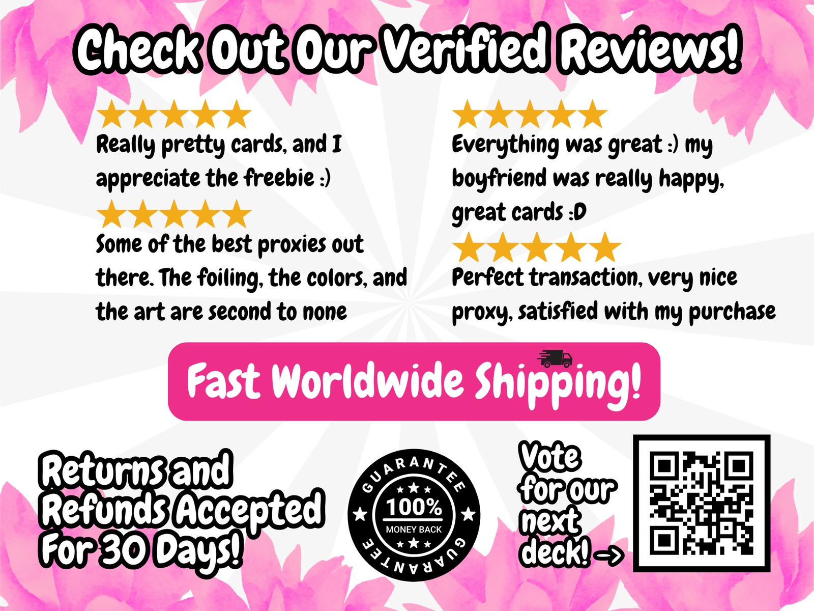 – Community Driven – We care what our customers want! Vote for our next deck here: https://strawpoll.com/e2naXqdNMyB