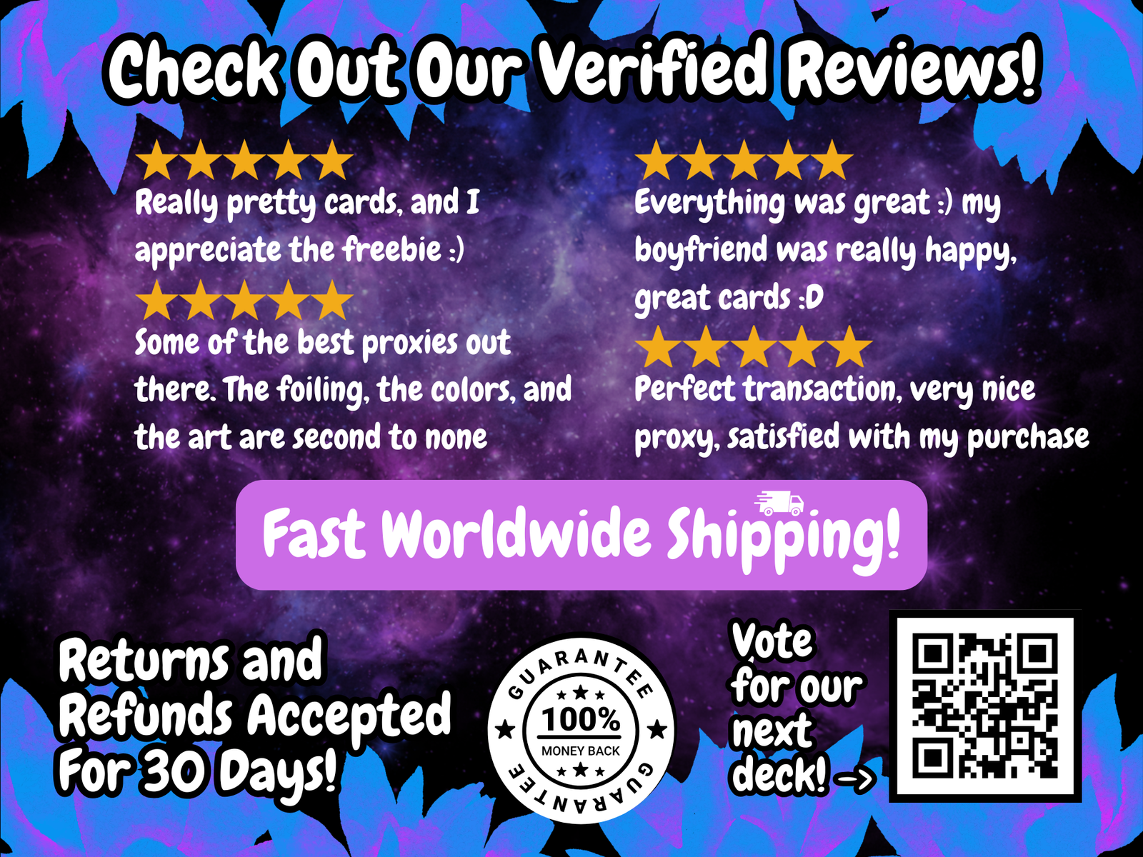 – Community Driven – We care what our customers want! Vote for our next deck here: https://strawpoll.com/e2naXqdNMyB
